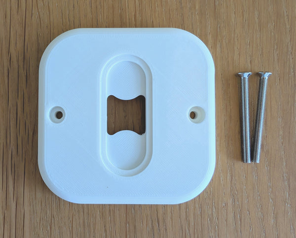 The mount is fitted by removing the light switch screws, and re-inserting through our mount. Just in case your original screws are not long enough we include a pair of extra long 40mm screws with each mount sold.